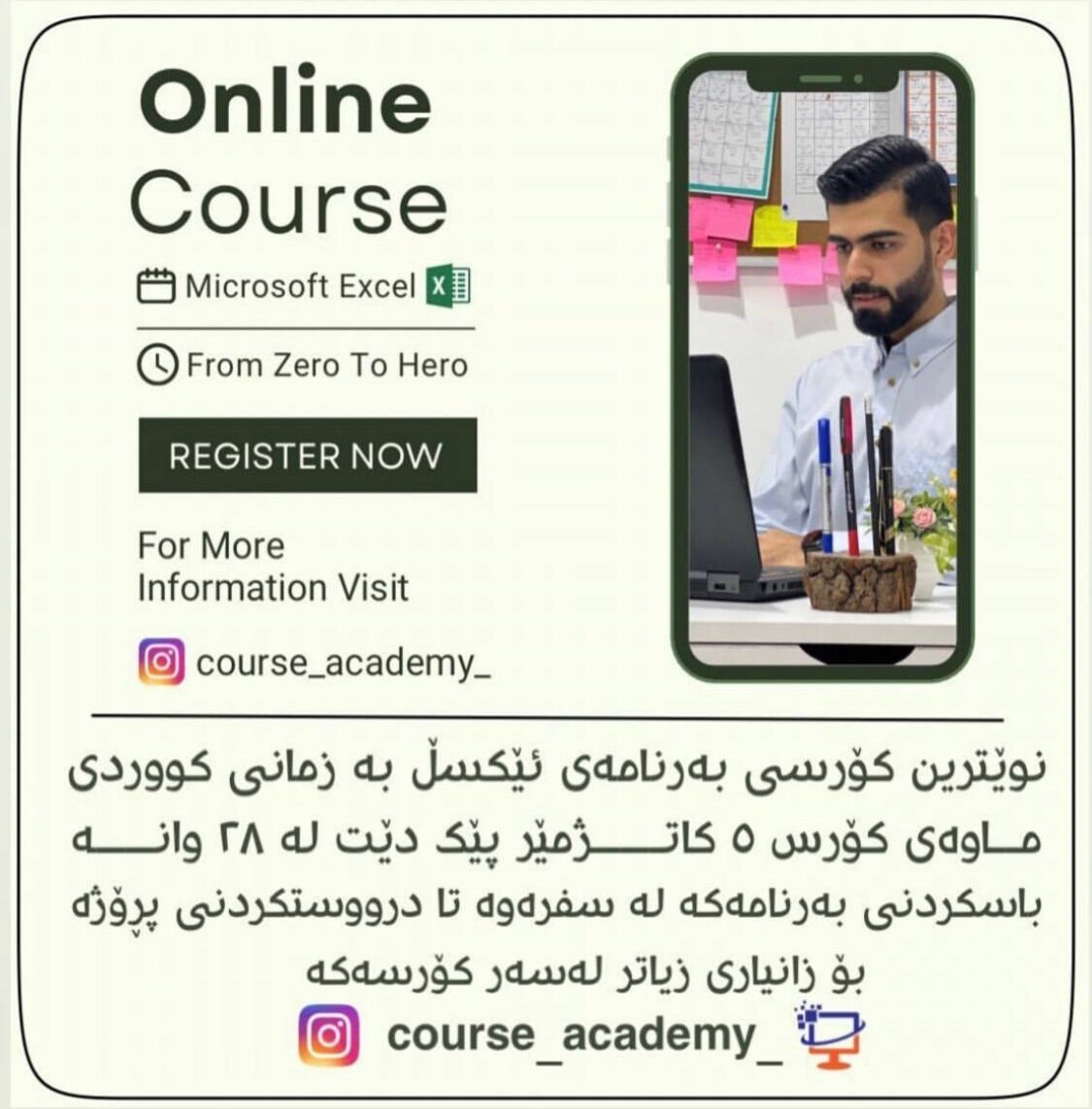 I currently have 7 courses available for students in different computer fields such as: Programming, Accounting and Editing As Soon as Possible I will Create several more courses in the fields of web development and design Many people from different cities in Kurdistan and even abroad have benefited from my knowledge that I have collected, learned and presented over the years In various fields of computer such as web development, programming, security, networking, editing, design and many other fields.